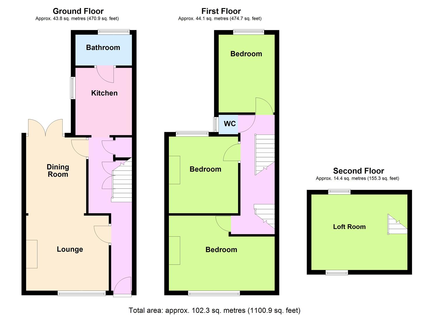 Accommodation offers a spacious lounge/dining room, modern kitchen, downstairs bathroom, first floor WC and three double bedrooms. The property also benefits from a loft room with Velux windows and a good size rear garden.