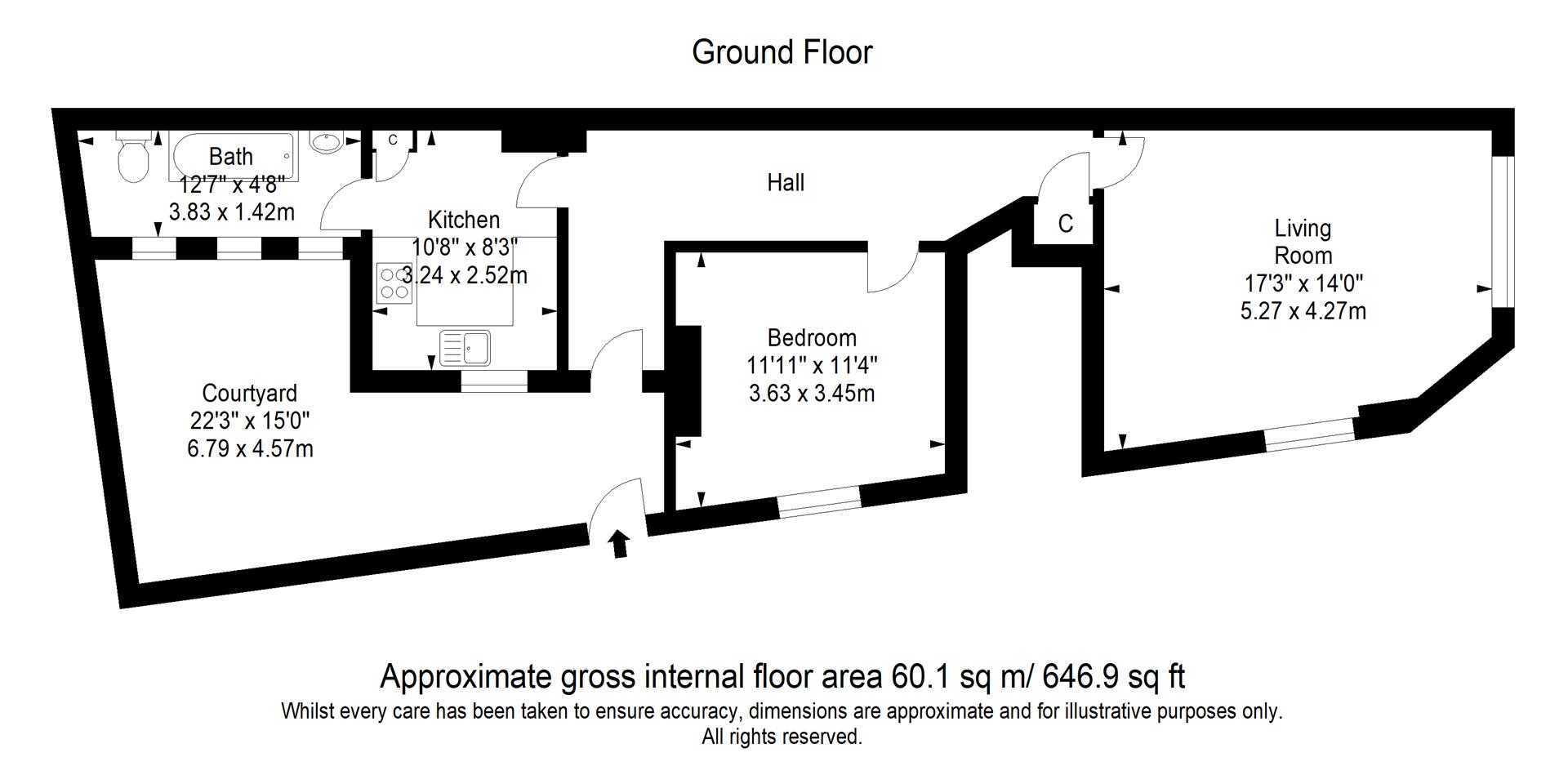 Accommodation offers a spacious hallway, south facing lounge, newly fitted kitchen, large double bedroom, and newly fitted bathroom. The property also benefits from a gated and walled courtyard garden with westerly aspect.