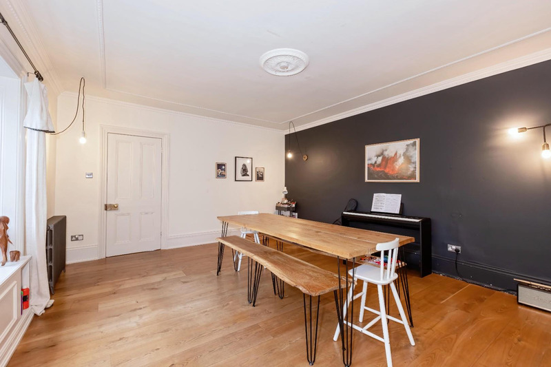 The property showcases elegant Georgian architecture with symmetrical proportions, sash windows, high ceilings, and original fireplaces. Inside accommodation includes six bedrooms, multiple reception rooms including a dual-aspect drawing room and conservatory, a bespoke kitchen/breakfast room, and several bathrooms including multiple ensuite options.