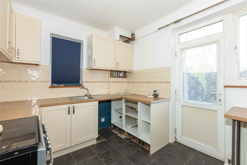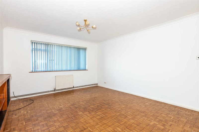 entrance hall, a large dual aspect lounge with separate dining area, that measures over 19ft. The lounge has attractive wooden parquet flooring. Two generous double bedrooms, a shower room (currently a wet room) . Kitchen with fitted boiler, and door to the communal garden at the rear of the property.
