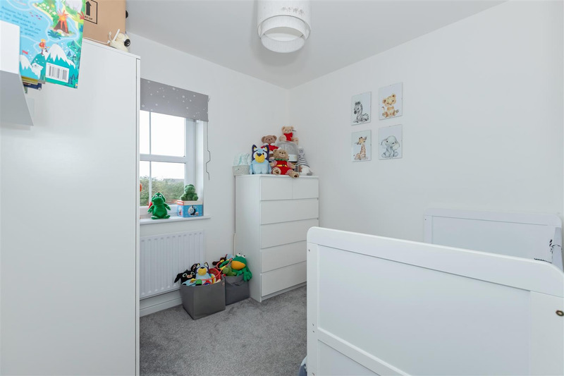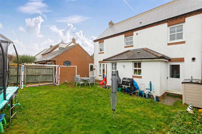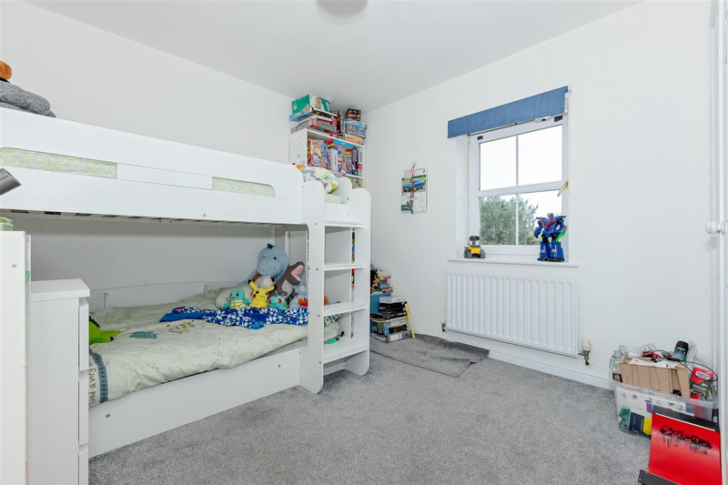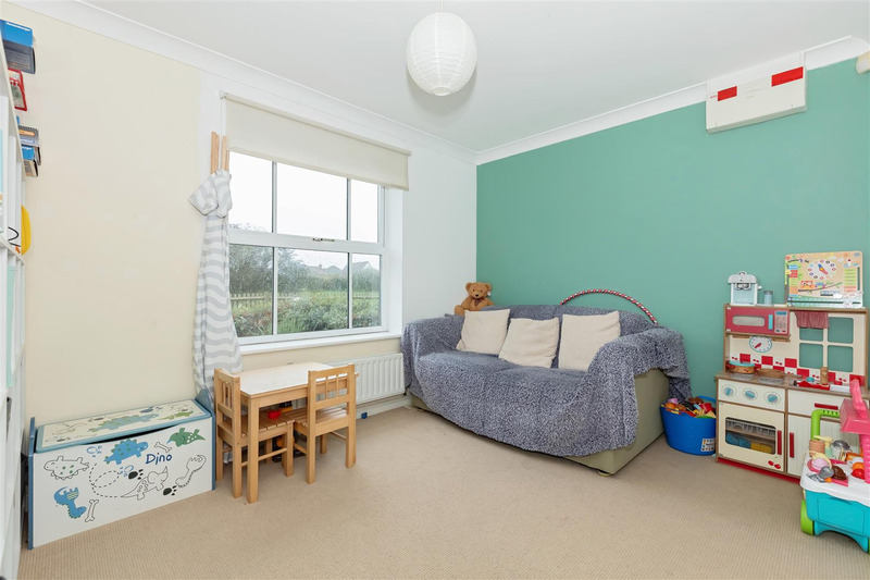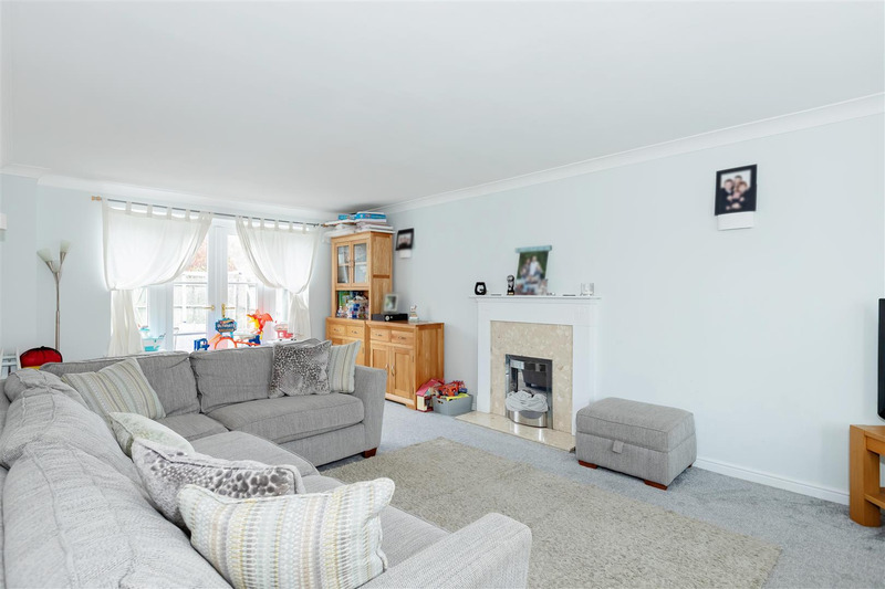 The entrance hall leads into the living room, being double aspect with double patio doors leading to the rear garden. With attractive views towards the adjacent Green. There is a further reception room/dining room. Cloakroom/WC, Kitchen/breakfast room and a utility room.