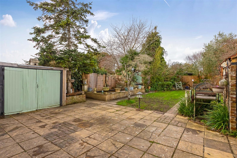 We are delighted to offer this well-proportioned three-bedroom detached family home in the popular Salvington district of Worthing. The property features two generous reception rooms, a fitted kitchen, three bedrooms, a family bathroom and a separate WC. Outside, there is a large double-length garage with workshop space, a generous rear garden with lawn, patio, and a charming pond, and ample off-road parking to the front. There is potential to extend, subject to the necessary planning consent, allowing for further adaptation to suit a growing family.