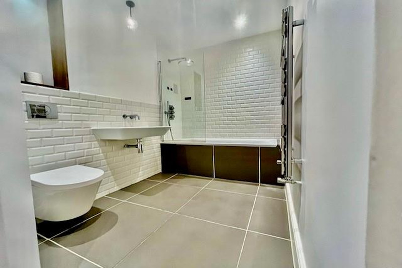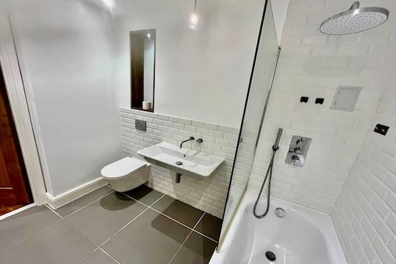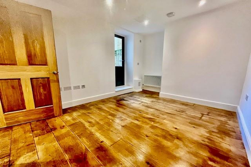 The double bedroom is generously sized, providing both comfort and functionality, with ample space for storage. Wooden flooring throughout the flat adds warmth and elegance, further contributing to the inviting ambiance. Outside courtyard space included.