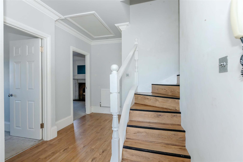 The property welcomes you with a bright and spacious entrance hallway, complete with useful storage for coats and household essentials. The accommodation includes three well-proportioned bedrooms, providing flexible space for family living, guests, or home working. The principal bedroom benefits from a stylish en suite shower room and a characterful feature fireplace with marble surround, adding warmth and period charm.