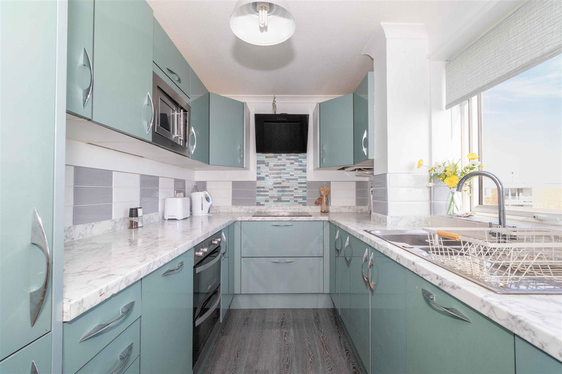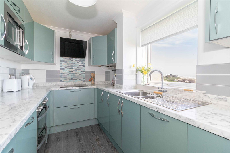 The property also benefits from a stylish, modern kitchen, fitted with a range of integrated appliances, including a dishwasher and washing machine, providing both convenience and functionality. Again with direct sea views. The lounge is also superb, lots of light, and leading to the sun balcony. The property is fully double glazed and with a modern combination boiler.