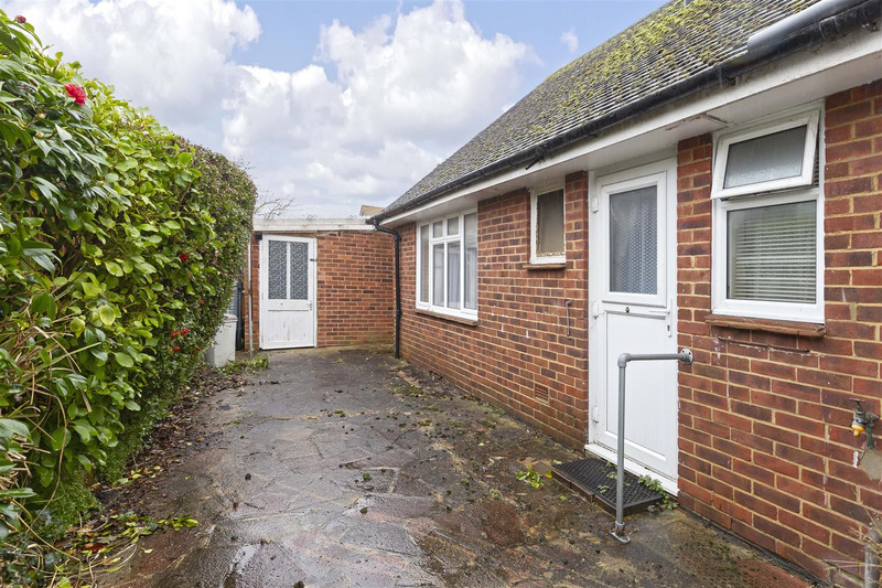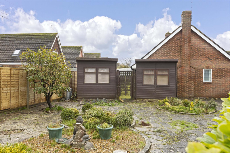 A Detached Bungalow situated in a close being about a quarter of a mile to Rustington Centre which has a good range of facilities and bus routes and with the sea and beach being just over half a mile away it is situated in a very convenient and popular location. The Bungalow that does require modernisation has porch, entrance hall, 21' Living/Dining Room, Kitchen, Two double bedrooms, kitchen, bathroom/w.c. Outside is a good size driveway leading to Garage with electric roller door and gardens to three sides, which are mainly paved for ease of maintenance. Internal viewing is recommended