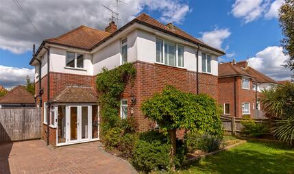 We are delighted to offer this charming and character filled Mock Tudor style detached family home, set within an impressive plot of over 1000 sqm in this highly favoured Tarring location. Offering generous and beautifully presented accommodation throughout, the property features five double bedrooms, three reception rooms, two family bathrooms with underfloor heating, and a stunning open plan kitchen/breakfast/dining space. The home is approached via large double gates leading to ample off road parking and an integral garage, while to the rear is a substantial mature landscaped garden with raised decking and a delightful secret garden area. Ideally positioned close to well regarded schools, local amenities, parks, transport links and the mainline railway station, with convenient access to both the A27 and A24, this is a rare opportunity to acquire a distinguished family residence in one of Worthing’s most desirable districts.