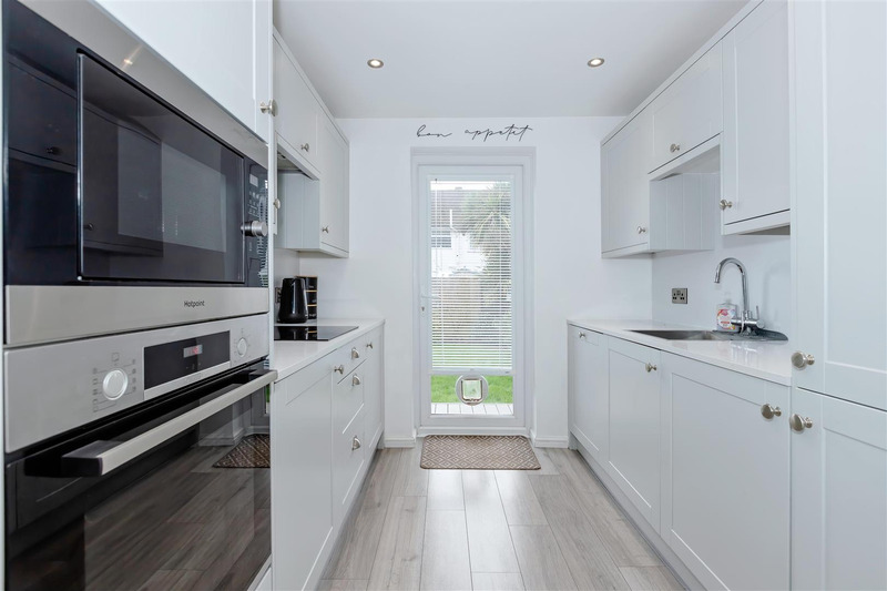 The property features a bright and spacious lounge/diner with French doors leading to a sunny south-facing rear garden, along with a modern, fully integrated kitchen. Upstairs, there are three well-proportioned bedrooms and a contemporary family bathroom. Additional benefits include a private driveway, a length-and-a-half garage with power and light, composite decking in the garden, and direct access from the garden to the garage.