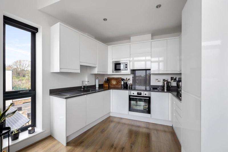 The apartment itself benefits from open plan kitchen living, two spacious bedrooms with built in wardrobes , family bathroom + one ensuite. Also benefitting from two allocated parking spaces, south facing balcony, share of freehold & a remainder of a 10 year warranty.