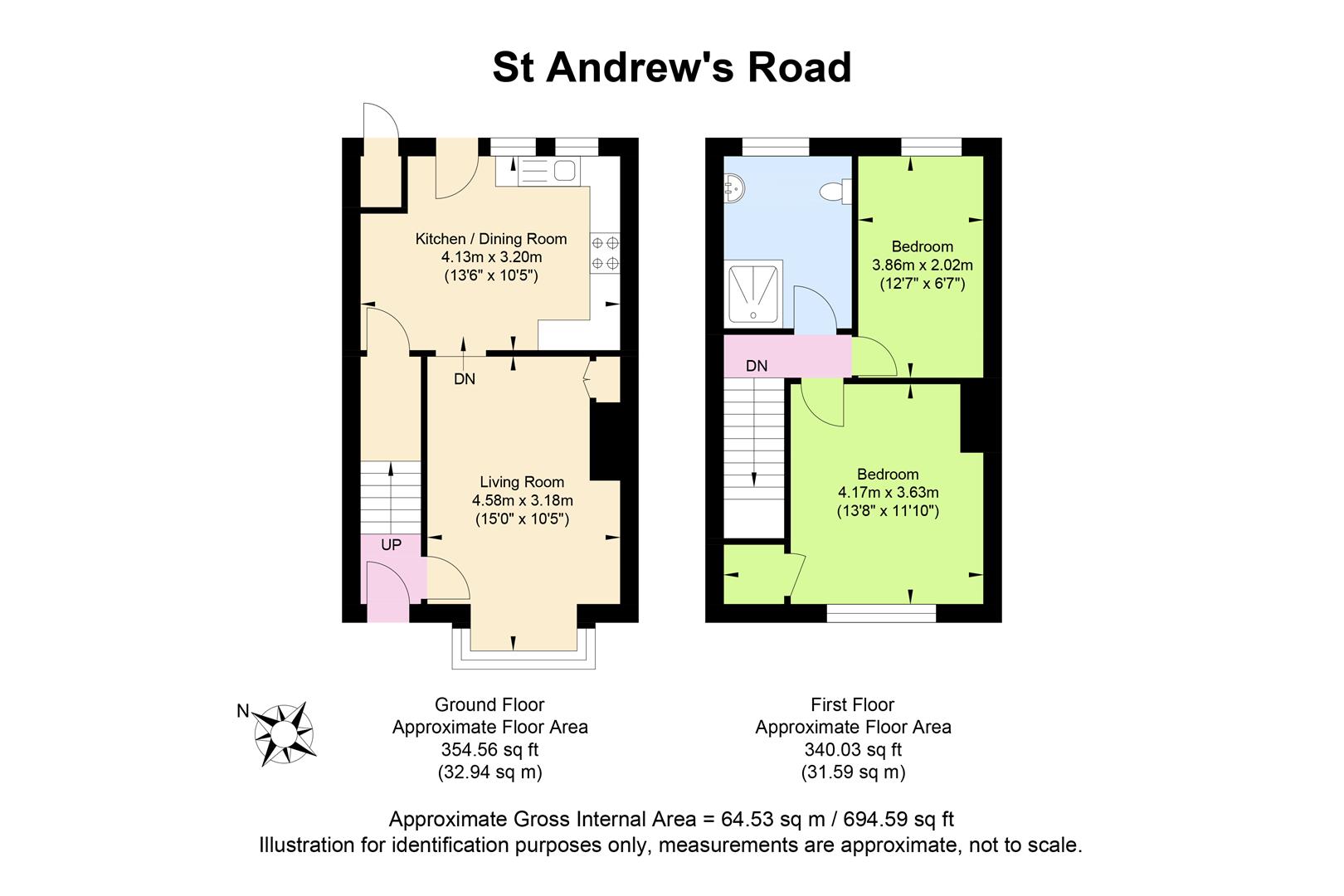 Accommodation offers entrance hall, bay fronted living room with feature fireplace and kitchen/breakfast room with separate utility cupboard housing a washing machine. Upstairs are two double bedrooms and a good size shower room. Other benefits include off road parking to the front and a feature landscaped enclosed rear garden with log cabin.