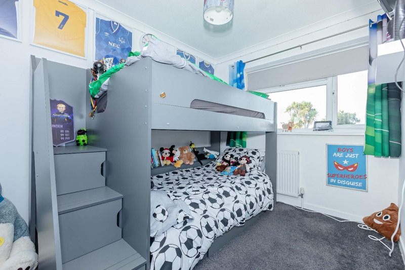 Upstairs, there are two bedrooms: a generous main double and a second bedroom suitable for a child or home working, along with a contemporary family bathroom.