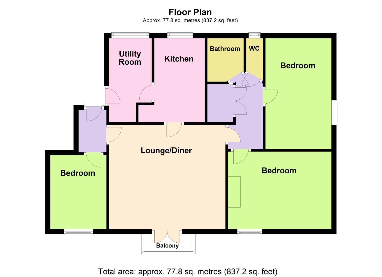 The apartment comprises; separate kitchen, spacious living area with access to balcony, three double bedrooms, family bathroom and utility room.