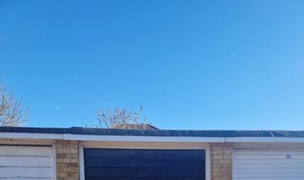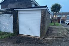 Freehold garage with up and over door, felted roof and power and light.